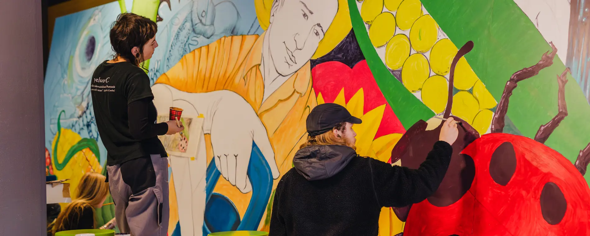 Demi, één van onze studenten, vertelt: ‘De muurschildering is onderdeel van het traject waar we een jaar lang mee bezig zijn, samen met studenten Laboratoriumtechniek. Het heet ‘aqua art awareness’. Je kunt het zien als een aandachtskreet, maar dan op een leuke manier.