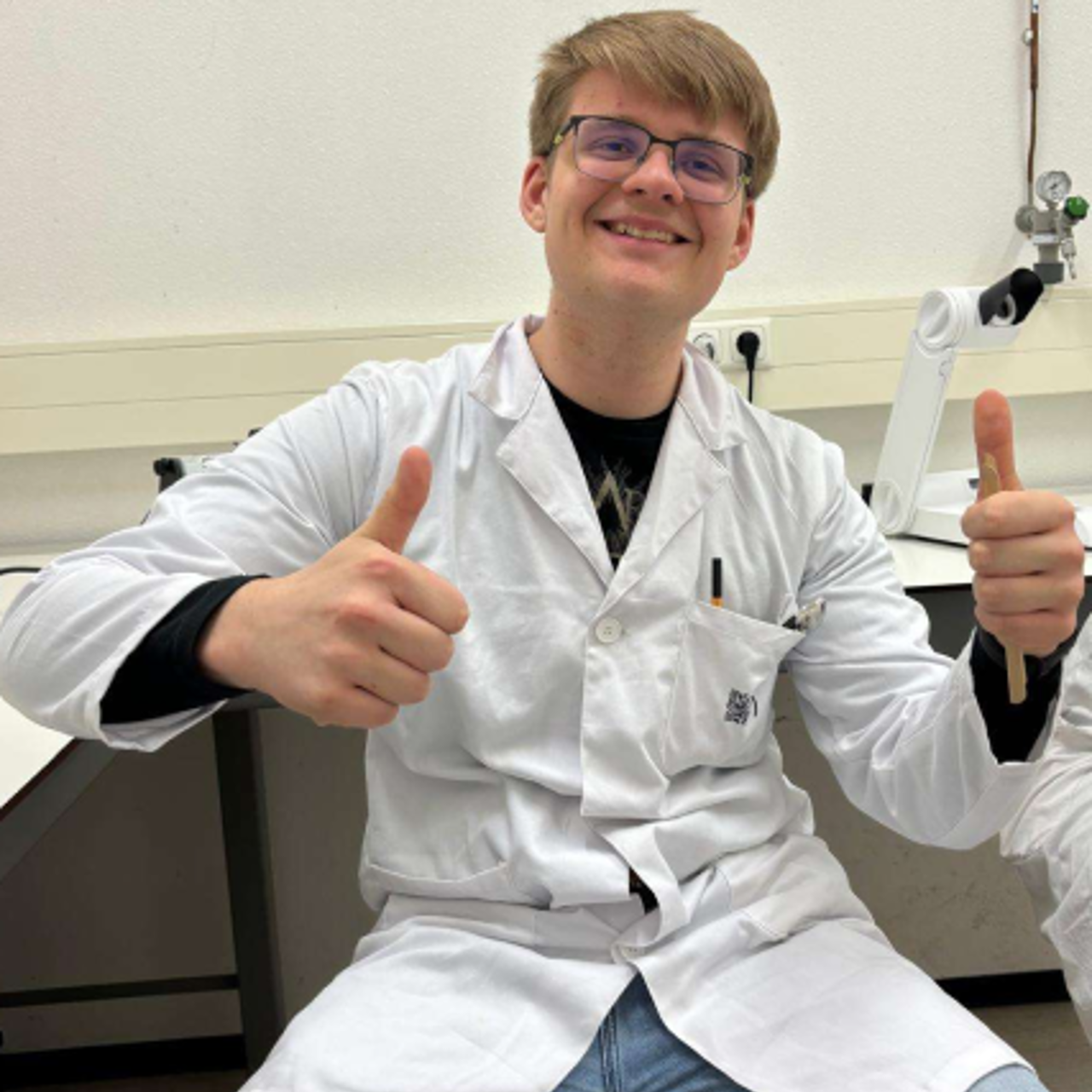 Thomas is na zijn opleiding door gaan studeren. Hij zit nu in zijn tweede jaar van de hbo-opleiding Chemie.