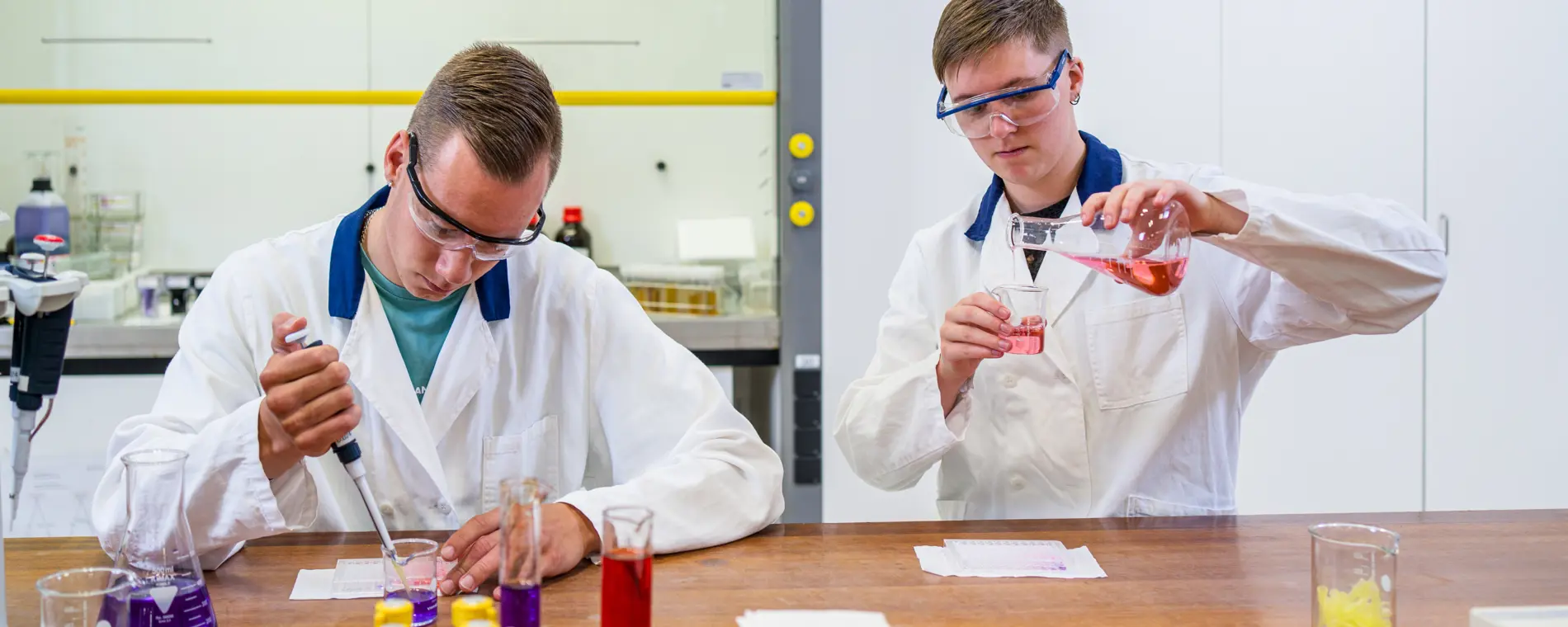 Hier leert hij vooral over chemische principes en reacties en ontwikkelt hij zijn laboratoriumvaardigheden.