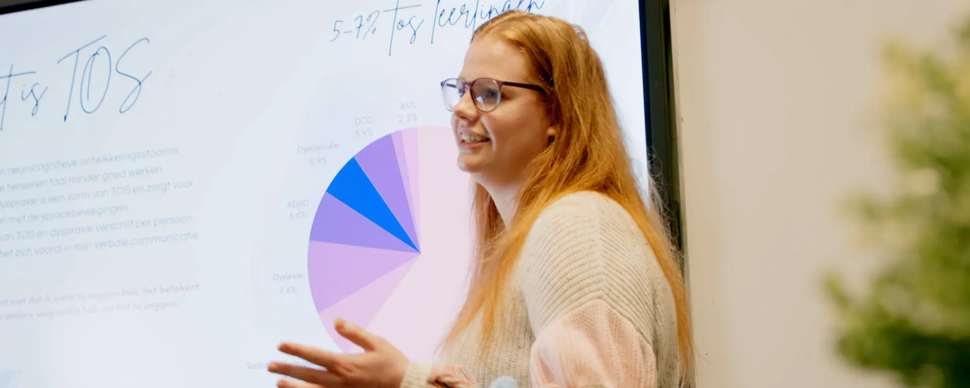Jessica heeft verbale ontwikkelingsdyspraxie, een taalontwikkelingsstoornis (TOS). Dat is niet altijd makkelijk, maar dat houdt haar absoluut niet tegen. Ze heeft een druk leven: ze volgt de opleiding Leidinggevende leisure op niveau 4, maakt vlogs en heeft een eigen bedrijf waarmee ze presentaties en lezingen geeft over TOS. Om bewustzijn te creëren, maar ook om een nieuwe kijk te bieden over de impact van TOS in het dagelijks leven.