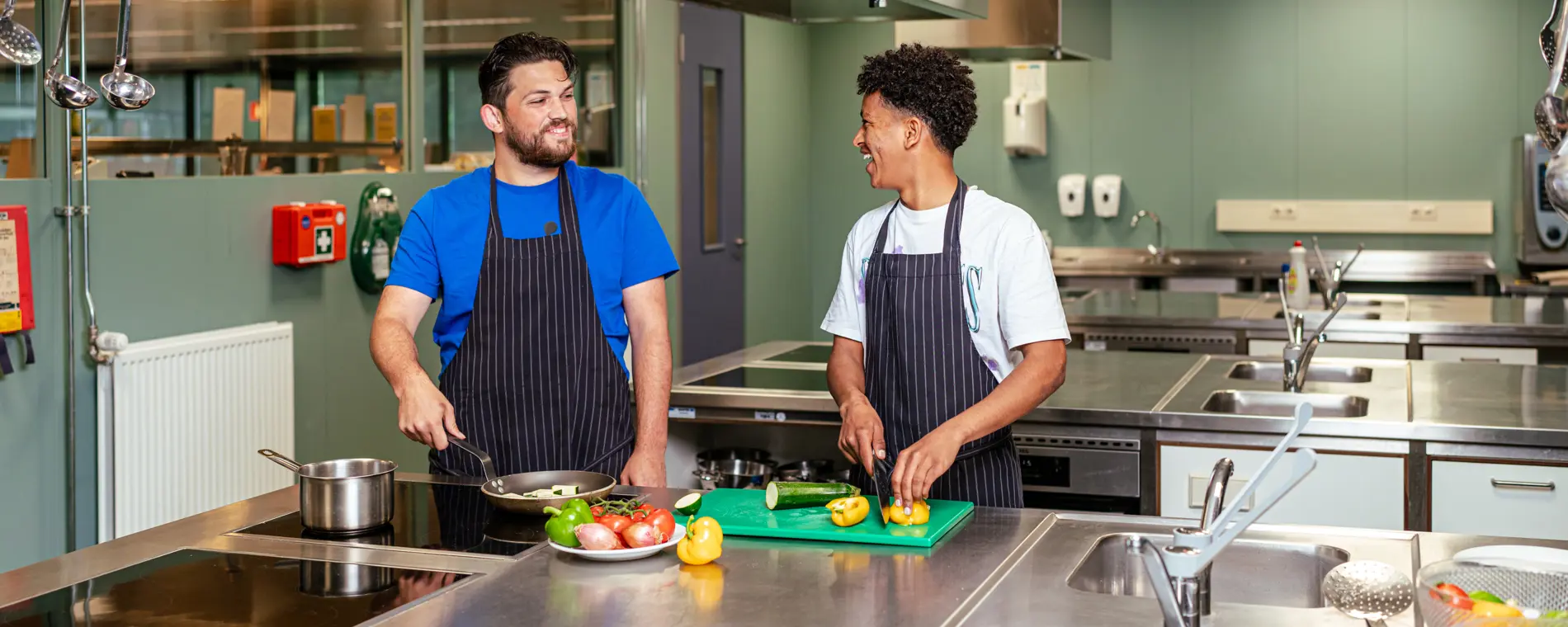 Je leert hoe je helpt bij het maken en verpakken van voedingsmiddelen. Ook leer je werken in een keuken: van het wassen en snijden van ingrediënten, tot het schoonmaken van de werkplekken. Verder krijg je kookles. En omdat je straks veel samenwerkt, krijg je ook les in overleggen en samenwerken.