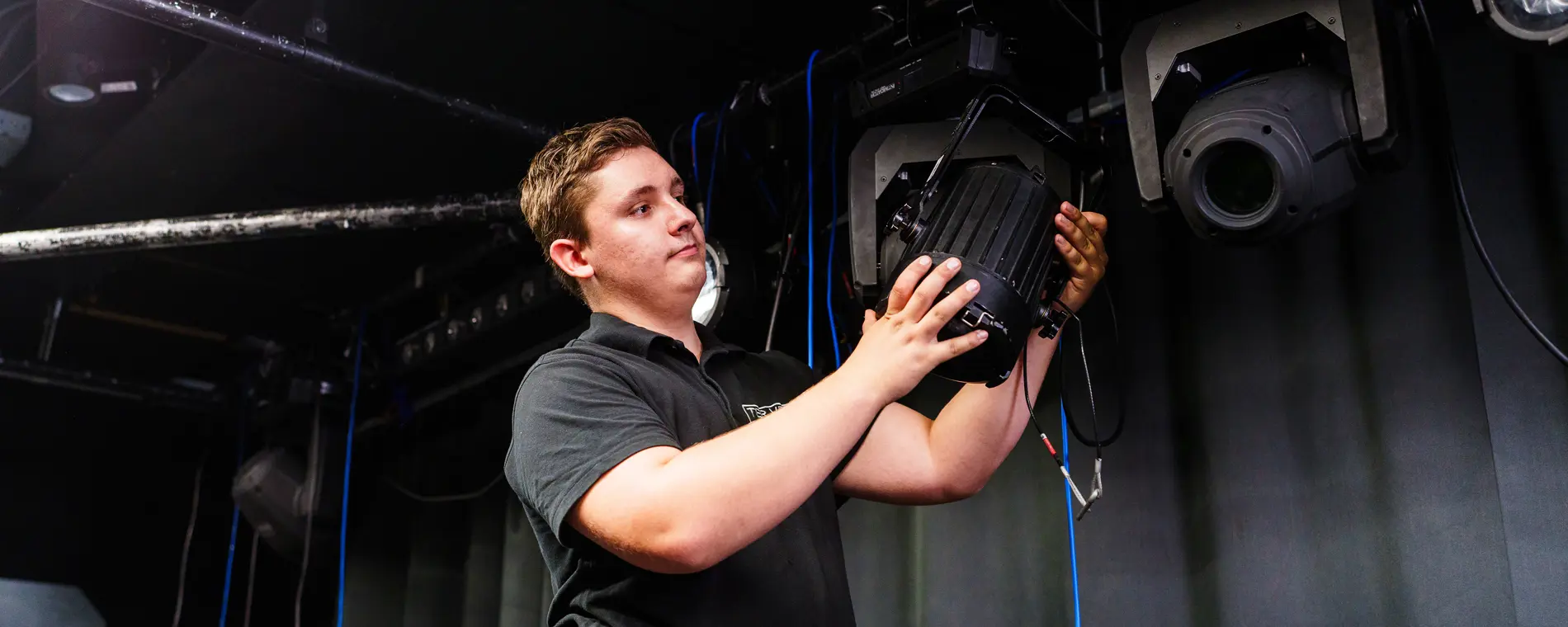 Deze opleiding is gericht op de theater, muziek- en (zakelijke) evenementensector. De focus ligt tijdens je opleiding vooral op de combinatie van beeldtechniek, podiumtechniek, geluidstechniek en licht. Samen met acteurs, artiesten, muzikanten, decorontwerpers en vormgevers maak je licht- en beeldshows en verzorg je podiumtechniek en het geluid.