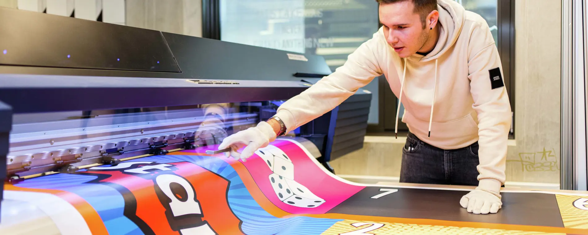 Je bedenkt en maakt je ontwerp in het tekenprogramma Illustrator en voert deze uit op de machines die we in het lokaal hebben en/of je werkt op locatie. De machines waar je mee gaat werken zijn o.a. snijplotter, textielpers, fullcolour printer, graveermachine, lamineermachine, ringenpers, buttonmachine en mokkenpers. Als je je product hebt voorbereid voor verdere verwerking, ga je deze plakken, monteren of persen. Je bent dus zowel technisch als creatief bezig.